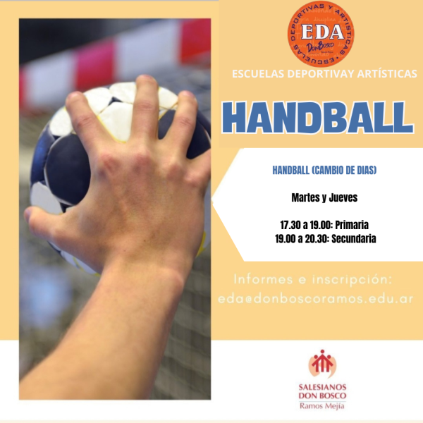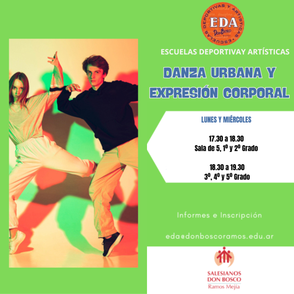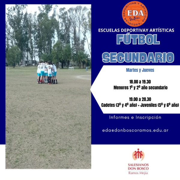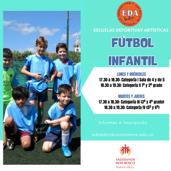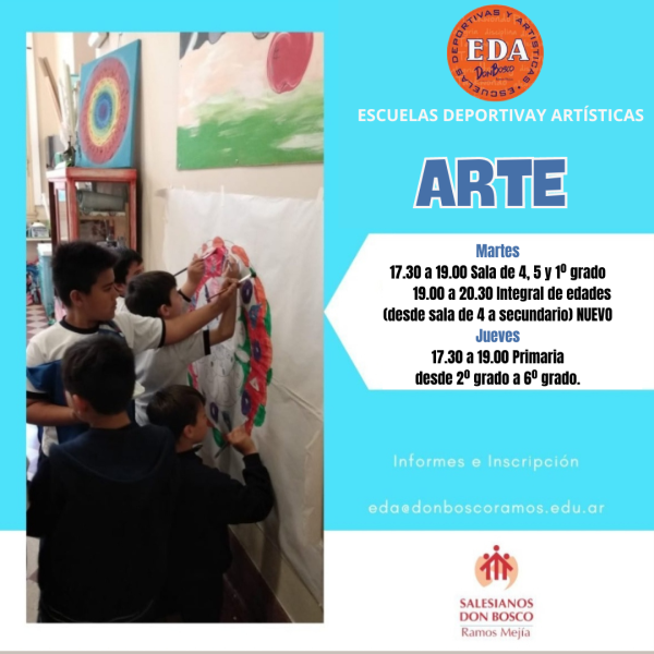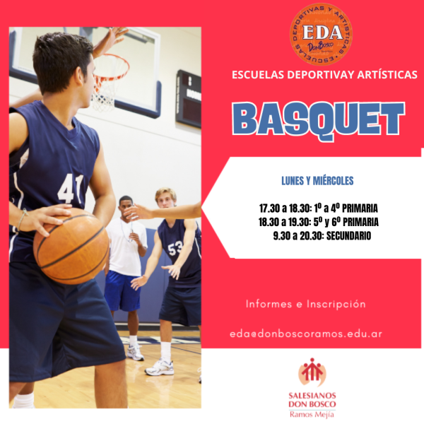Las Escuelas Deportivas y Artisticas funcionan de lunes a viernes a partir de las 17.30 hs. en el Campo de Deportes de nuestra Casa. La propuesta abarca diez disciplinas, se incorporan alumnos durante todo el año y son abiertas a la comunidad. Para más información escribirnos a: eda@donboscoramos.edu.ar